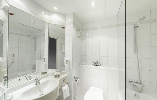 Alle klimatisierten Zimmer im Mercure Kamen Unna verfügen über kostenfreies WLAN, einen Flachbild-TV sowie eine kombinierte Badewanne und Dusche.